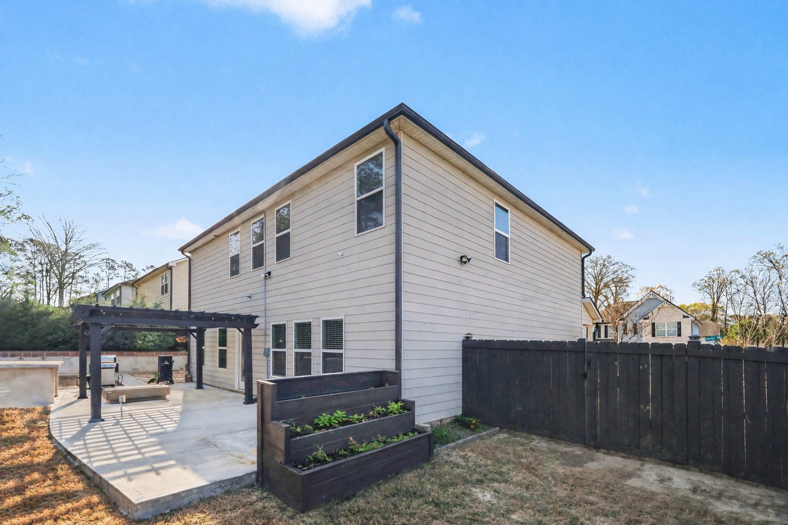 Welcome to your dream home! This stunning 4BR/2.5BA, 2-car garage home, built in 2019, combines modern finishes with a warm, inviting atmosphere. Located just off Covington Hwy in a friendly neighborhood, this home is perfect for families and professionals alike. As you enter the main level, you'll find a versatile flex room that can serve as an office or playroom. The kitchen, which features ample cabinet storage, granite countertops, & stainless steel appliances, flows seamlessly into the open-concept dining area and family room, complete with a cozy fireplace and a stylish accent wall. Upstairs you will discover a generously sized primary bedroom featuring an ensuite bath and a spacious walk-in closet. Three additional bedrooms, each with roomy closets, provide plenty of space for family or guests, along with a shared hall bathroom. Step outside to your private, fenced backyard oasis, where you'll fall in love with the charming portico and built-in bar, ideal for outdoor gatherings and relaxation. Garden enthusiasts will appreciate the custom planters throughout the yard, perfect for cultivating your favorite plants. Home is also wired for you to easily activate security service. This home offers convenient access to a variety of shops and restaurants, as well as quick access to Hwy 20 and 285, making it an ideal location for both work and play. Don't miss your chance to make this home your own!